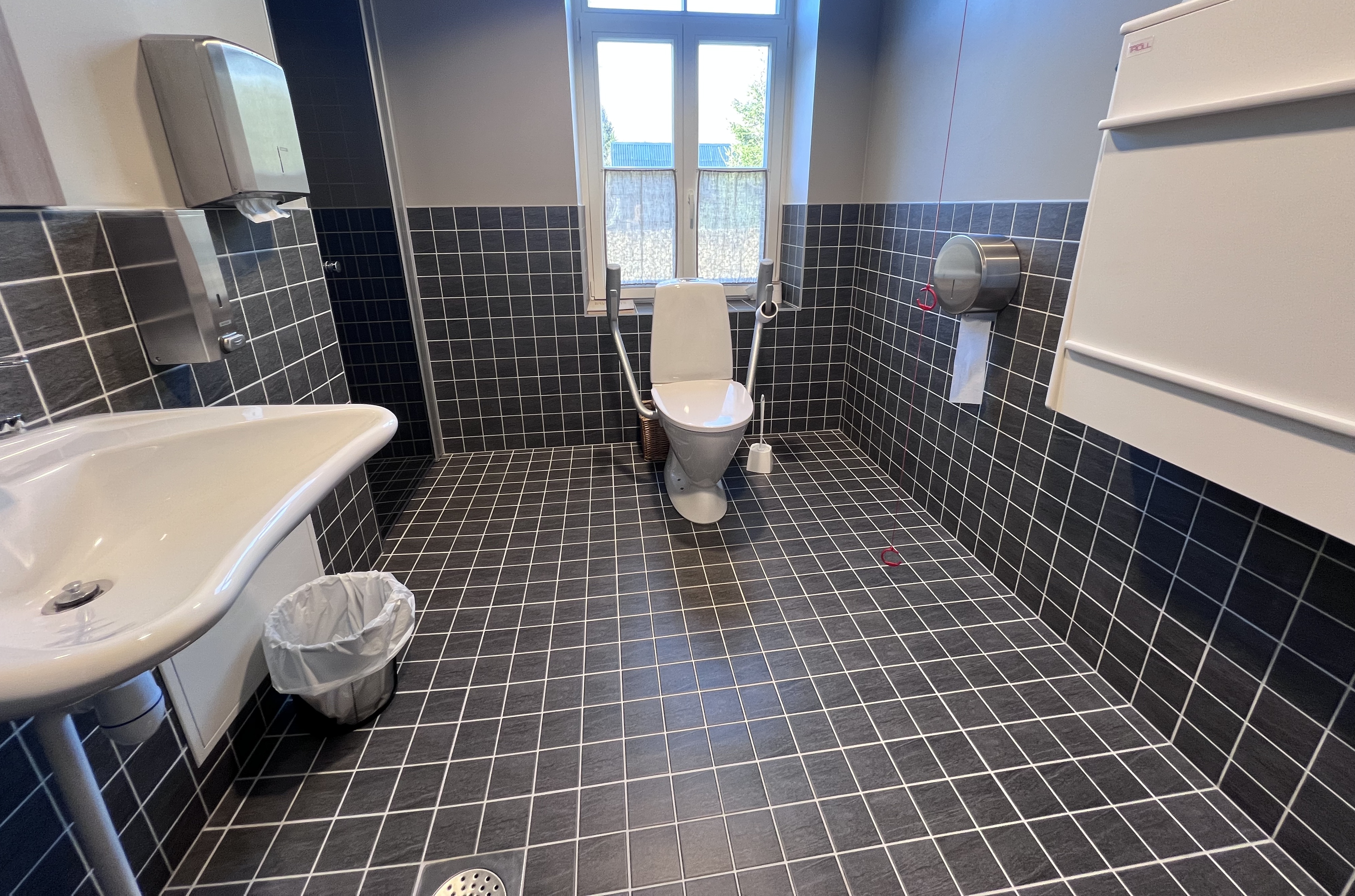 Majas on kokku 6 tualetti. 5 allkorrusel ja 1 üleval. Invatualett asub I korruse koridoris, tagauksest sisenedes vasakut kätt. Tualetis on olemas hädaabi kutsumise võimalus, madal kraanikauss. Lisaks asub invatualetis ka mähkimislaud koos niiskete salvrättide ja beebipuudriga ja seal on võimalus ka vajadusel imetada (andke meile sellest teada ja saame korraldada tugitooli ja muu vajaliku). Kui on vaja lapse toitu soojendada, saame sada muuseumi köögis teha. Invatualetis on olemas ka dušinurk. Invatualetis ja II korruse tualetis on olemas beebipott, WC potile lisatav lapse kaas ja lastele mõeldud aste, et nad ulataksid käsi pesta kraanikausis.
